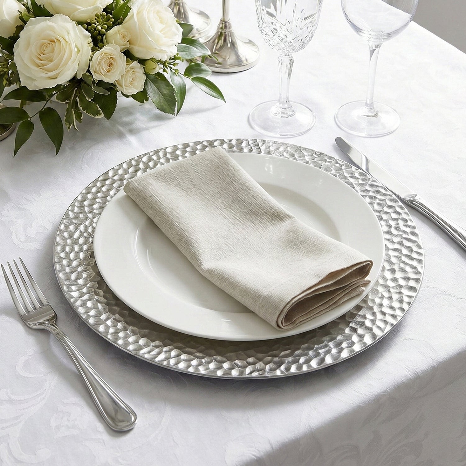 Silver Hammered Charger Plate Set, 12 Pieces