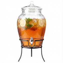 Beverage Dispenser with Metal Rack & Glass Lid 2.7 Gal