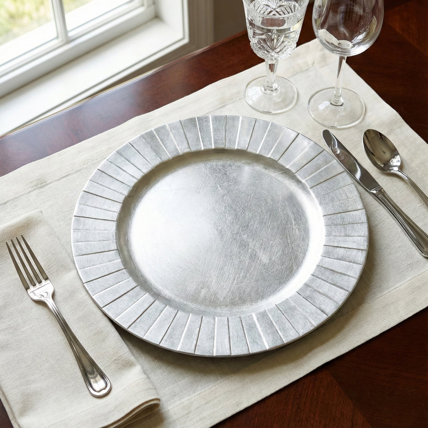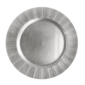 Add sleek sophistication to your table with the Silver Linear Charger Plate Set.
