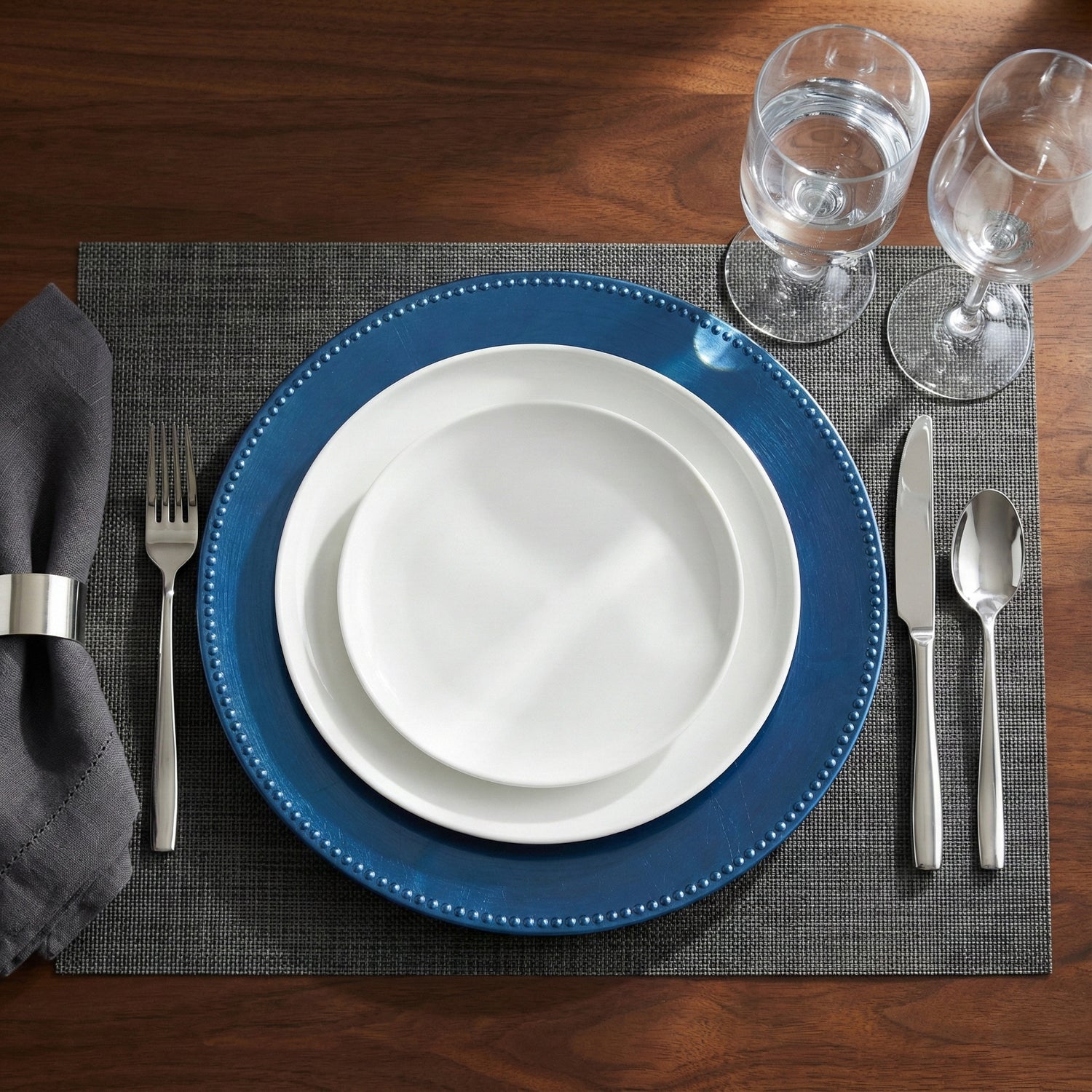 Set of 12 Royal Blue Beaded Charger Plate 13"D