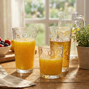 Command your table with eight generous 15.75oz glasses for bold pours and eight sleek 12.5oz glasses for refined sips. This fearless collection transforms any gathering into an unforgettable experience, giving you the flexibility to serve cocktails, wine, or water with confidence.