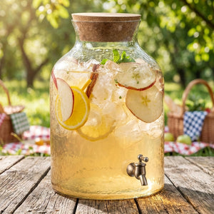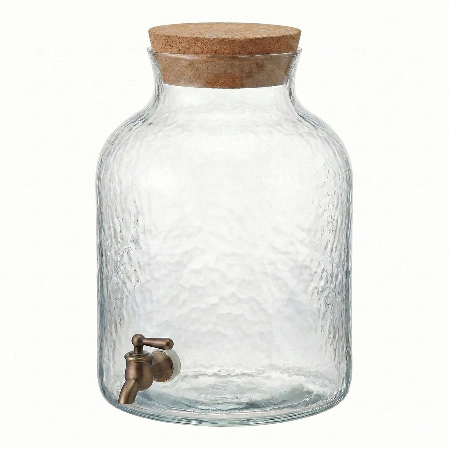 The Hammered Glass Beverage Dispenser offers substantial 2.7-gallon capacity with refined aesthetic appeal.