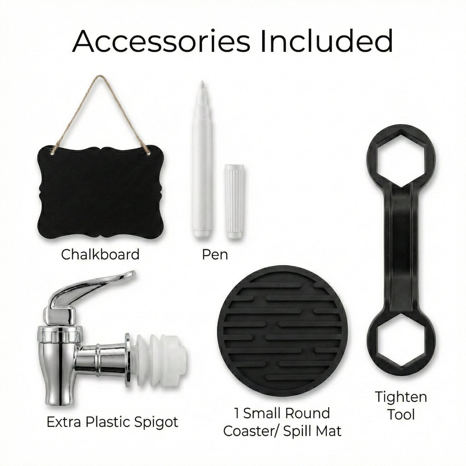 Your complete setup arrives with a protective spill mat, chalkboard and chalk for personalized drink descriptions, plus a tighten screw tool for secure assembly.