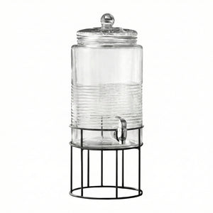 Made of glass and featuring a clear color, this delightful drink dispenser effortlessly combines functionality and visual appeal, making it the perfect accessory for both casual and formal occasions.