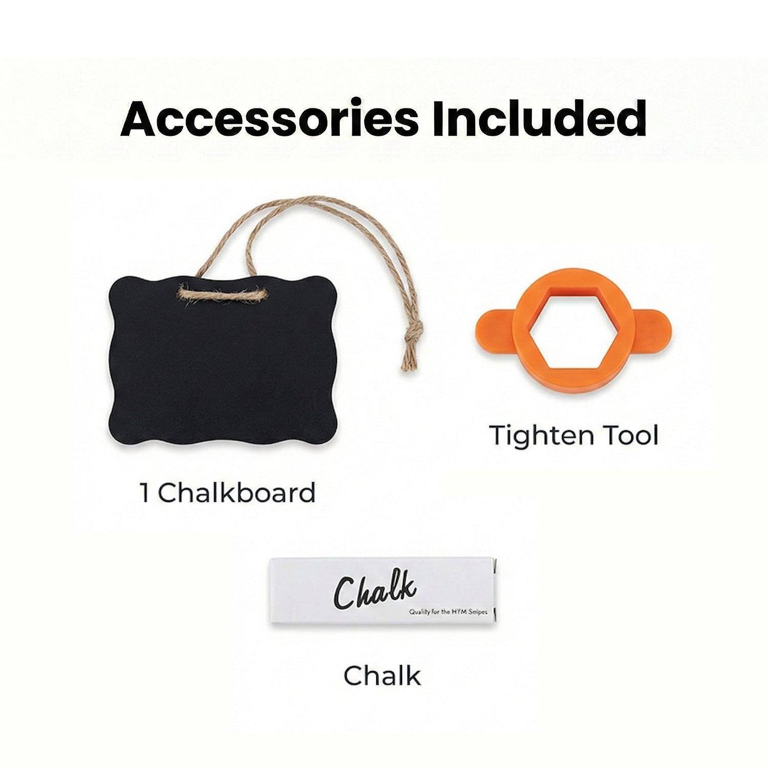 Set Included:1.90 Gallon Dispenser, Metal Stand, Extra Spigot, Tighten Tool, Chalkboard, Chalk, Small Round Coaster