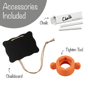 Set Included: 2.7 Gallon Dispenser, Metal Stand, Extra Spigot, Tighten Tool, Chalkboard, Chalk, Small Round Coaster