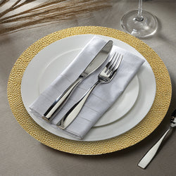 Elevate your table with our “Chargers” collection — a carefully selected mix of decorative charger plates that bring polish and presence to every setting. From electro-plated metallics and rich embossing to sleek mirrored finishes and classic glass with subtle detailing, these chargers are designed to anchor your place settings with a layer of elegance. Ideal for everyday sophistication or special-occasion flair, each piece brings refined texture and style to the table.