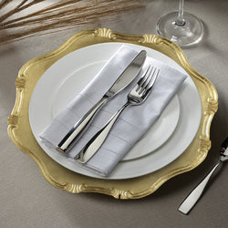 Elevate your table with our “Chargers” collection — a carefully selected mix of decorative charger plates that bring polish and presence to every setting. From electro-plated metallics and rich embossing to sleek mirrored finishes and classic glass with subtle detailing, these chargers are designed to anchor your place settings with a layer of elegance. Ideal for everyday sophistication or special-occasion flair, each piece brings refined texture and style to the table.