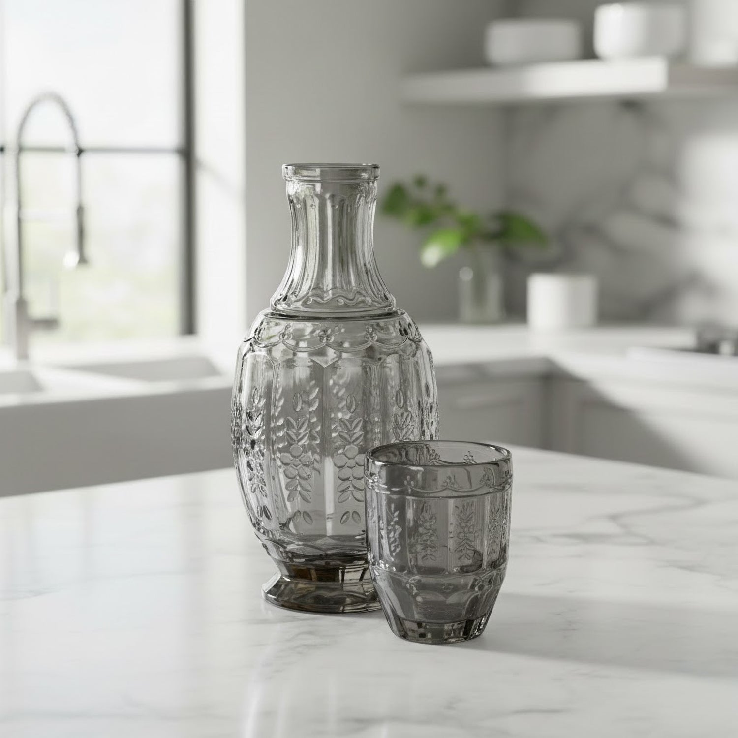 Elegant, smart design – With a matching tumbler that also conveniently serves as a lid, this stylish carafe is the perfect addition to your nightstand array