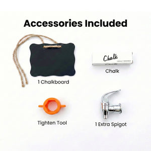 Set Included:1 Gallon Dispenser, Lid, Extra Spigot, Chalk Board