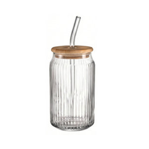 Set of 4 Ribbed Glass Sippers - 18oz. with Bamboo Lid