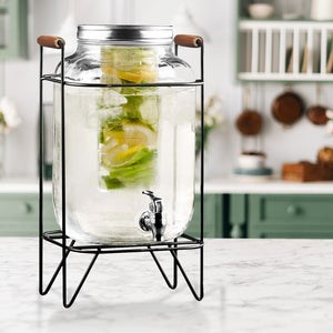 Set Included: 2.11 Gallon Dispenser, Metal Stand, Stainless steel Spigot, Tighten Tool, Chalkboard, Chalk, Small Round Coaster