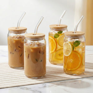 Set Included: 4 Glasses, 4 Lids, 4 Glass Straws, 2 Straw Cleaners