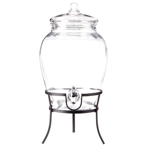 Beverage Dispenser with Metal Rack & Glass Lid 2.7 Gal