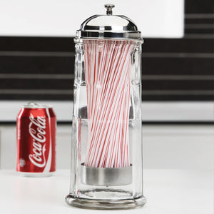 Clear Glass Straw Holder with Chrome Color Lid /Straws Included - in – Retro Diner Style
