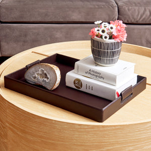 Dark PU Leather Brown Tray with Handles 19" X 14"