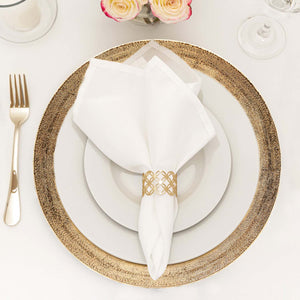Enhance your dining setting with the DAZZLE Gold Electroplated Charger Set, featuring four 13-inch plates that bring a luxurious gold finish to your table.