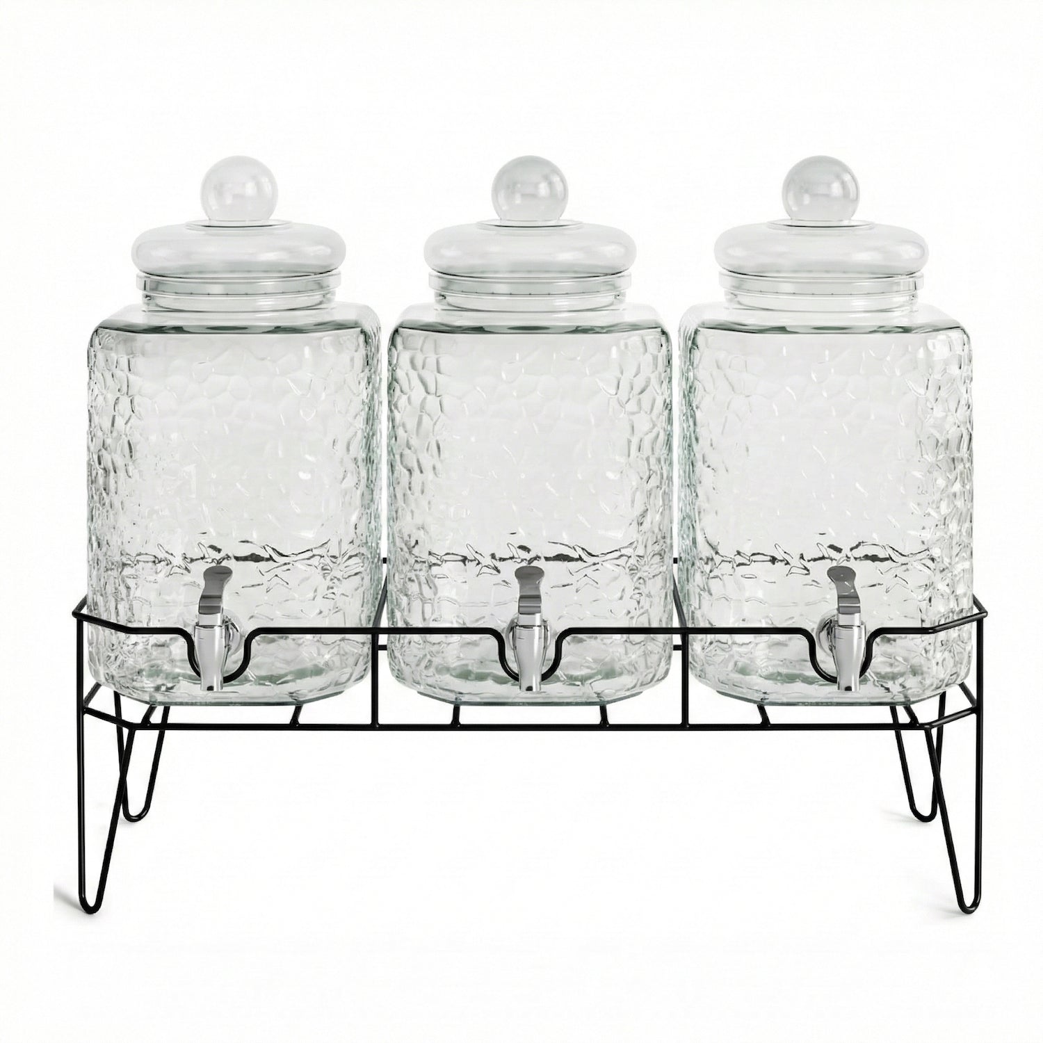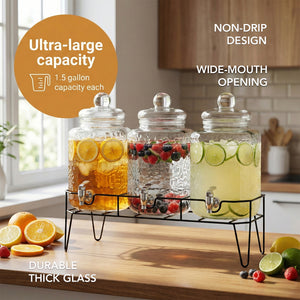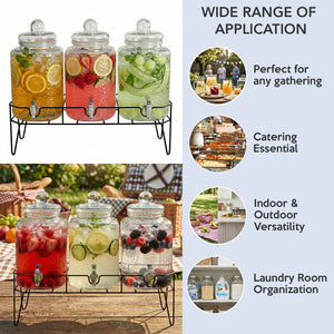 What's Included: 3 Dispensers, 3 Lids, Metal Stand, Extra Spigot