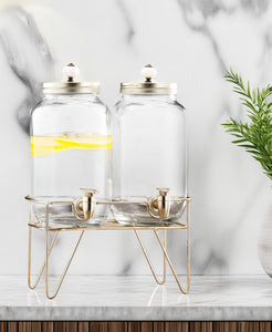 Julian 2-Piece Set Bev Dispensers with Gold Wire Stand