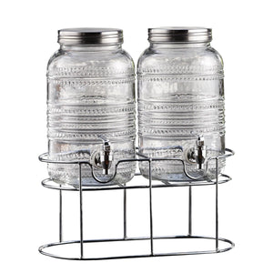 Set Included: Set of 2/ 1 Gallon Dispenser Each, Metal Stand, Extra Spigot, Tighten Tool, Chalkboard, Chalk, Small Round Coaster