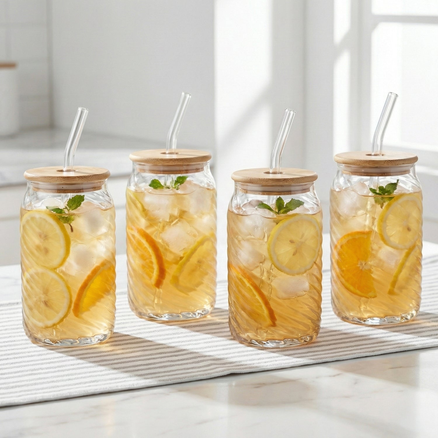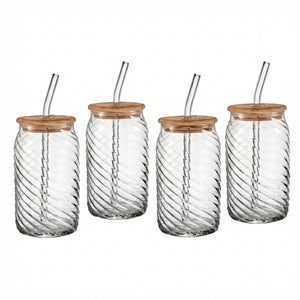 Belmar Set of 4 Glass Sippers - 18oz. with Bamboo Lid