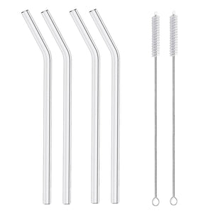 Set Included: 4 Glasses, 4 Lids, 4 Glass Straws, 2 Straw Cleaners