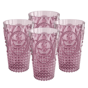 Raise a toast to elegance with this stunning set of four acrylic tumblers featuring a timeless Fleur de lis design in rich plum.