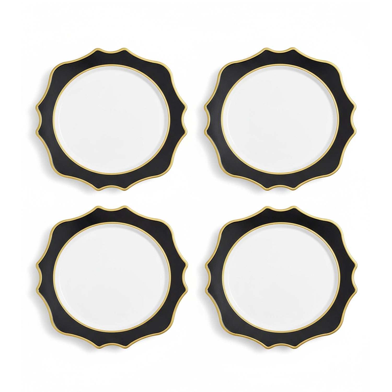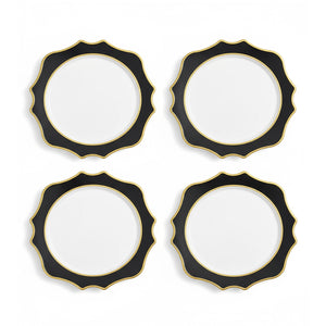 Scallop Black & Gold with White Center Set of 4 Charger Plates 13"D