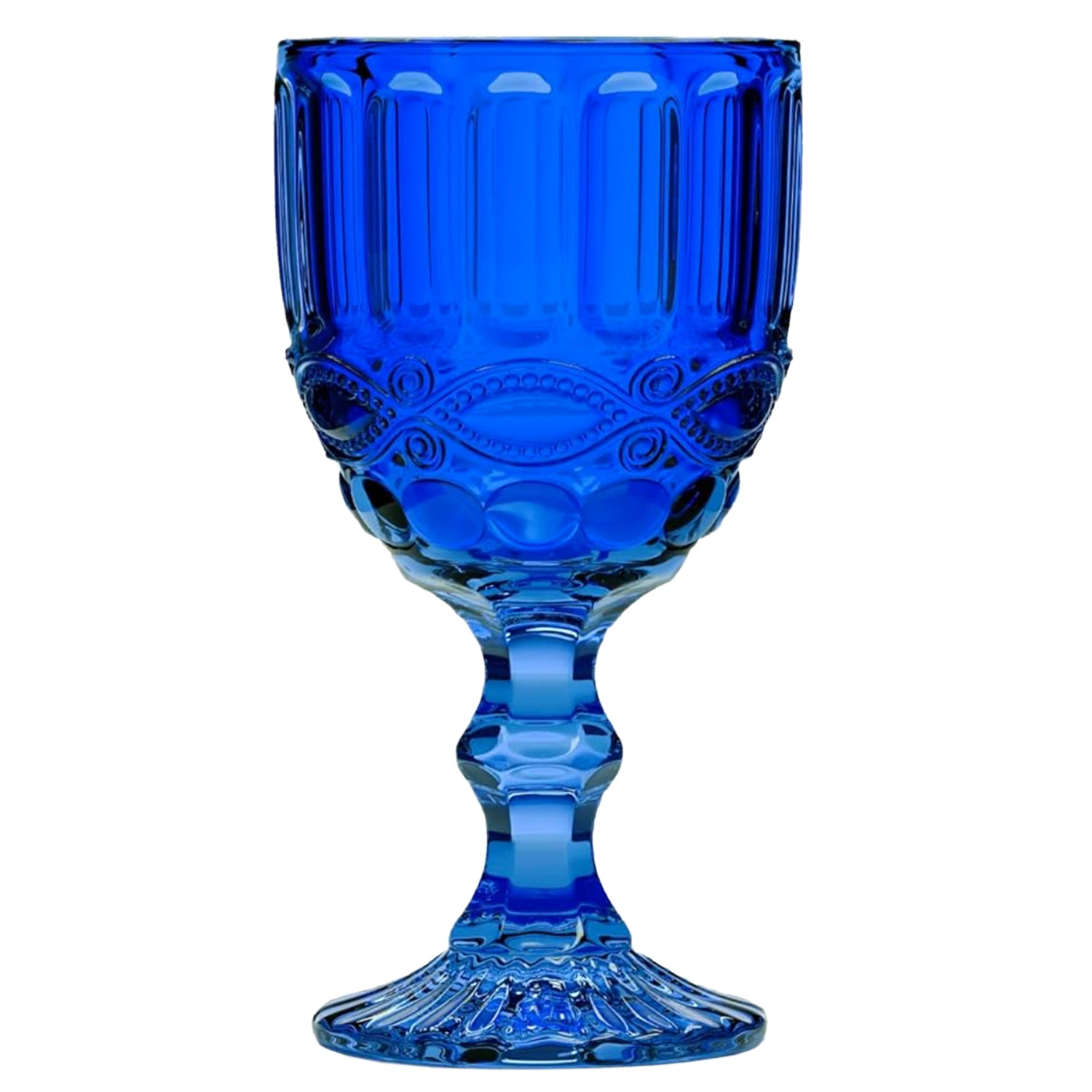 Set of 6 Blue Embossed Wine Glasses (8.4 oz / 250 mL)